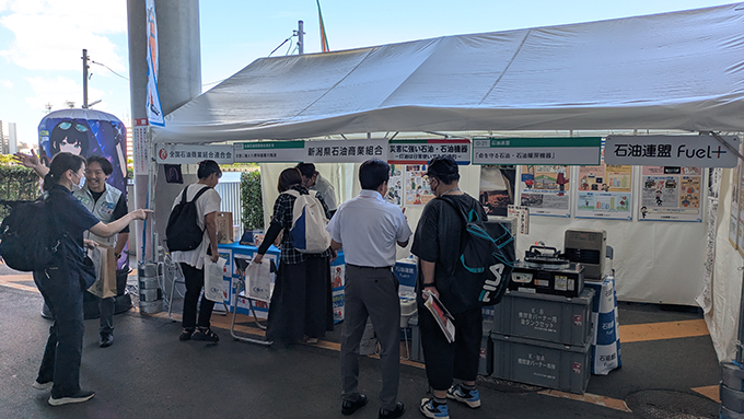 石油連盟は全石連と共に、石油の優位性の説明と冬季の停電時に必要な石油暖房機器を展示。全石連は「満タン&灯油プラス1缶運動」の啓発活動により、「命を守る」燃料、石油機器の備蓄の重要性をご説明します。