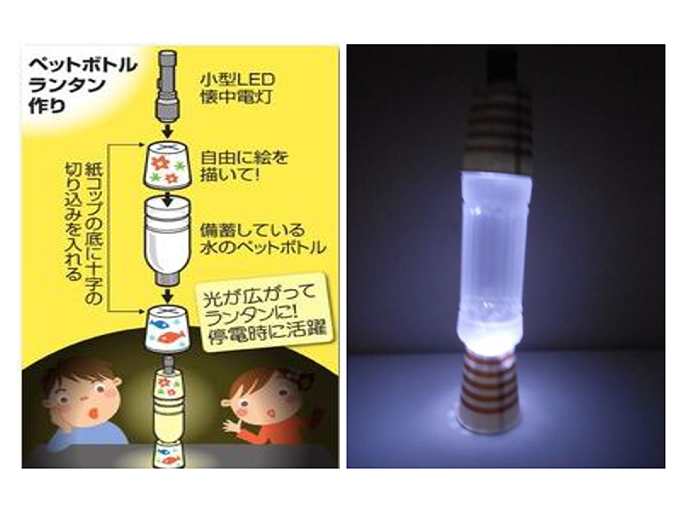 ペットボトルランタンやペットボトルを利用した防災グッズの作成体験などを行います。
